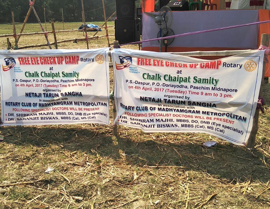 Free Eye Check-up Camp at Chalk Chaipat Samity in association with Netaji Tarun Sangha, Paschim Medinipur on 4th April. This is our 7th Community Service –Medical project for this year. 130 patients were screened by Dr Shibram Majhi and his team . 30 patients were selected for free cataract surgery.