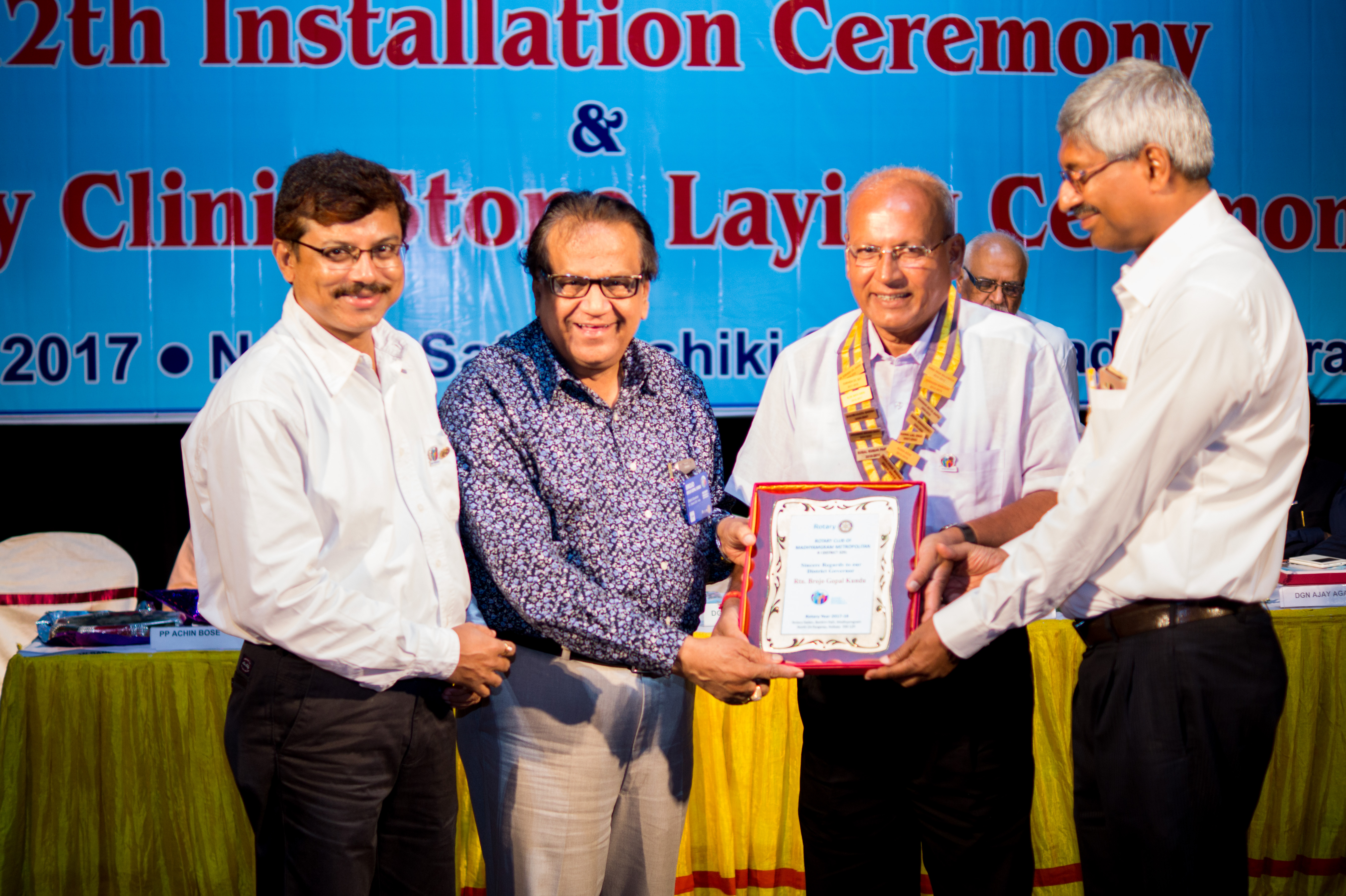 SUBHARAMBHA - 12th Installation on 2nd july,2017 at Nazrul Satabarshiki S2adan on 2nd July 2017. PDG Rtn. Shymasree Sen inaugurated stone laying with a short delightful speech. District Governor Rtn. Brojo Gopal Kundu, Chief Guest lighting the lamp of 12th Installation Ceremony with DGE Rtn. Mukul Sinha & DGN Rtn. Ajoy Agarwal.Guest of honour Swami Sureshanandaji, Adhyaksh,Bharat Sevashram Sangha ,Dokra grace the occasion and blessed us with inspiring speech. Past President Rtn. Alok Nath Saha handed over the charge to president Rtn. Subash Chandra Dey . It was followed by musical performance congratulating speech by our guests and multiple litreracy projects and publication of Installation souvenir Installation Chairman Rtn. Achin Bose thanks all the guest. Installation Ceremony comes to an end with fellowship & Dinner.